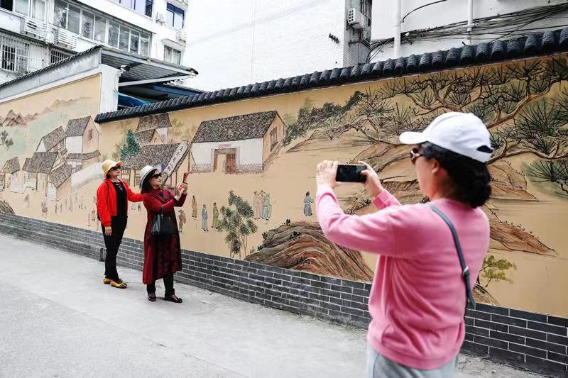 生动的酿酒场景,热闹的街市,优美的江边风景,立体的城市老照片……一面长约百米的壁画,借鉴《清明上河图》的形式,鲜活地展示了川南生活场景。随着老旧小区改造的持续推进,位于宜宾市翠屏区东浩街一侧的3D文化墙面貌于近日得到基本呈现,引得市民纷纷“种草”打卡。