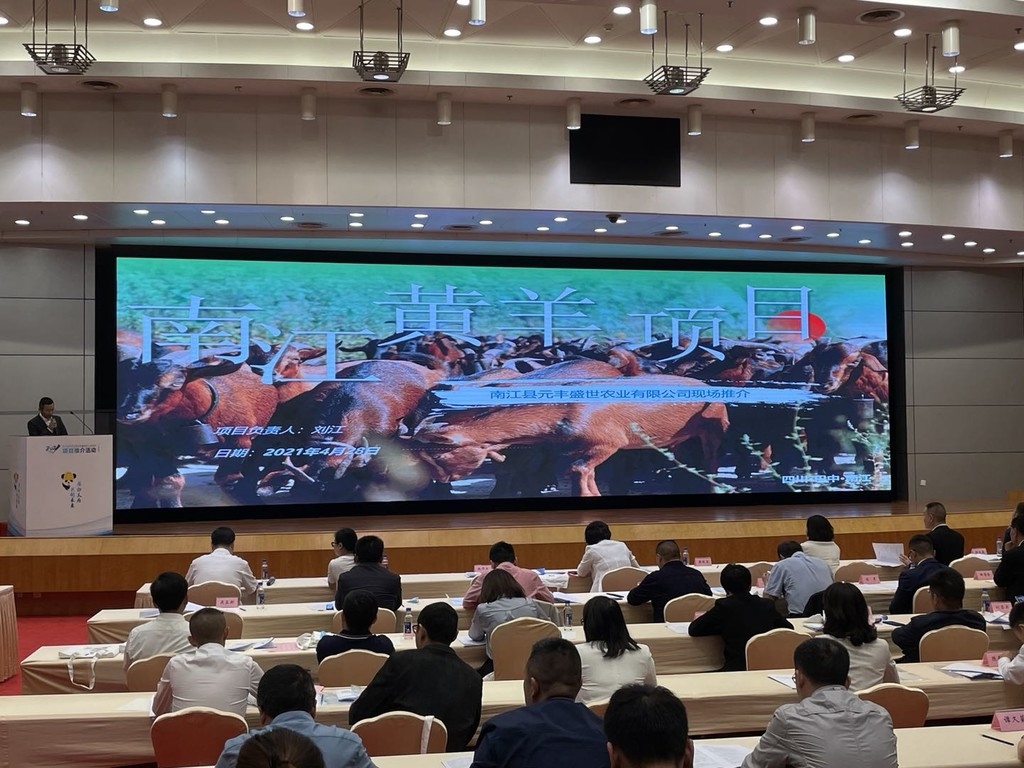 4月28日,以“雁归天府 共创未来”为主题,四川省2021年首场农民工及企业家返乡入乡创业项目推介活动在福建省福州市举行,此次活动共推介202个从全省21个市(州)精选出来的引资项目,总引资额756.8亿元。其中,包括南江县黄羊生态养殖在内的9个项目进行了现场推介。