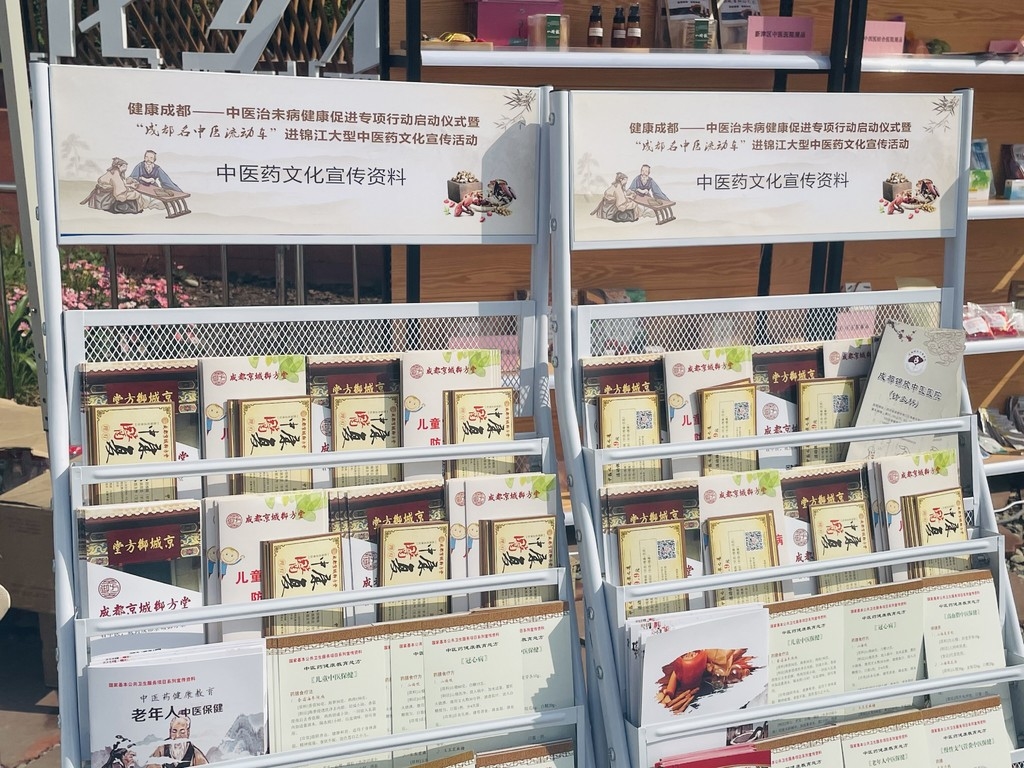 现场摆放了很多本中医药文化宣传资料。祁梦莹 摄