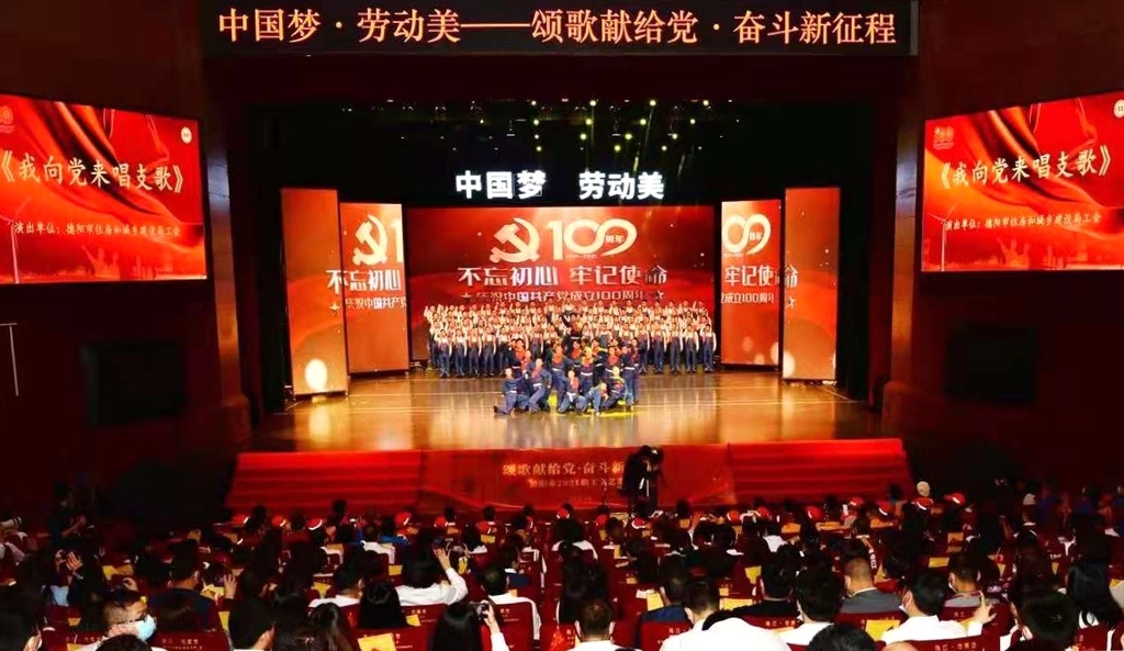 4月28日,由德阳市总工会主办的“中国梦·劳动美——颂歌献给党·奋斗新征程”职工文艺汇演在德阳市演艺中心举行。来自德阳市各县市区总工会、产业工会等组织的400名职工参加了文艺演出,共同庆祝“五一”劳动节。