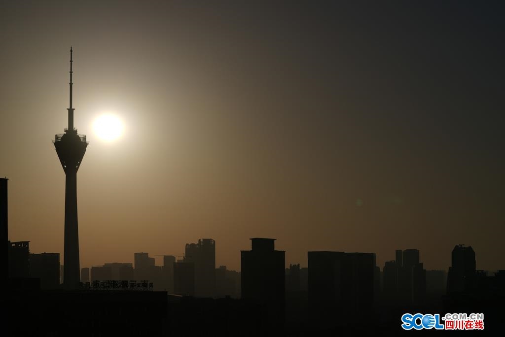2021年4月29日清晨,成都市区开启360度环绕观山模式,记者站在位于红星路二段的某建筑楼顶,东可眺望龙泉山脉,西望可见雪山绵延。