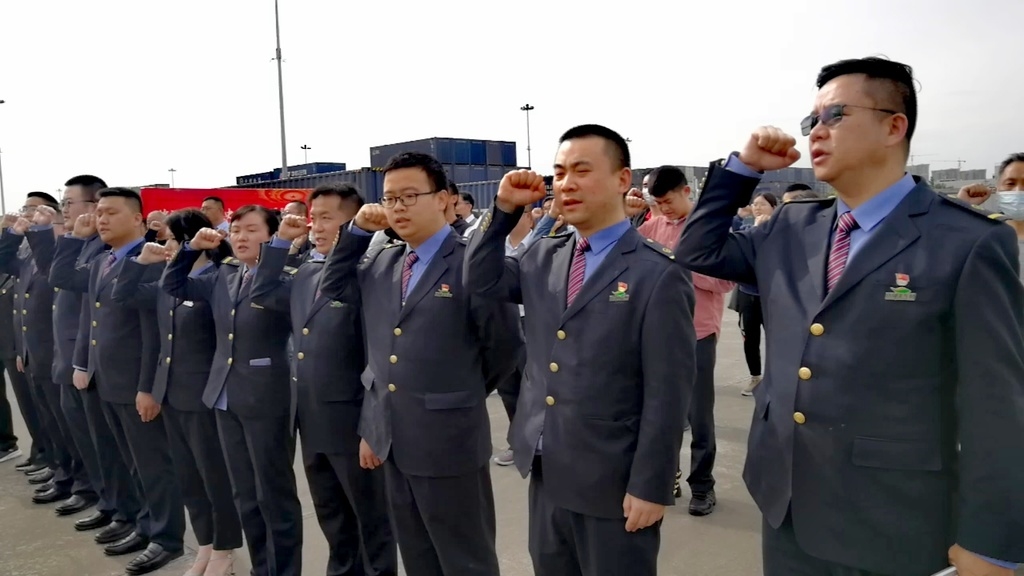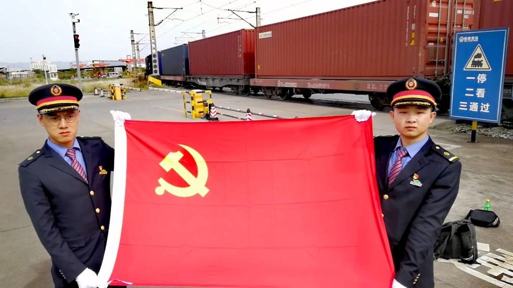 4月28日,成都市物流行业40多位党员在青白江国际铁路港温初心、学党史、听党课。在成都集装箱中心站,党员们迎着鲜红的党旗重温了入党誓词,同时还参与了中欧班列发车仪式。