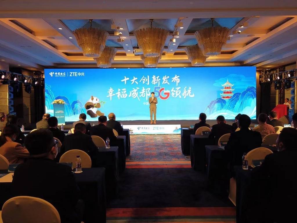 4月29日,由中国电信与中兴通讯联合举办的 “十大创新发布,幸福成都5G领航”活动。活动上,5G联合创新(成都)孵化中心正式揭牌。