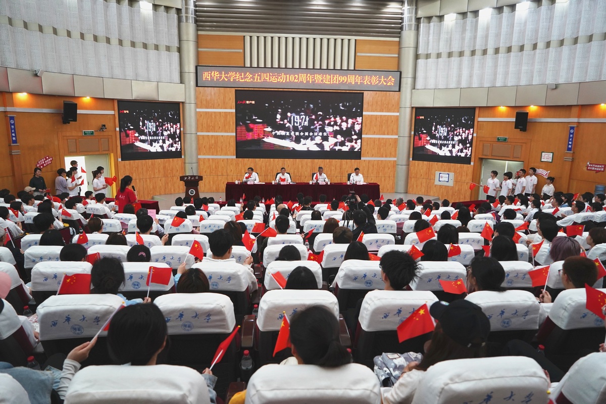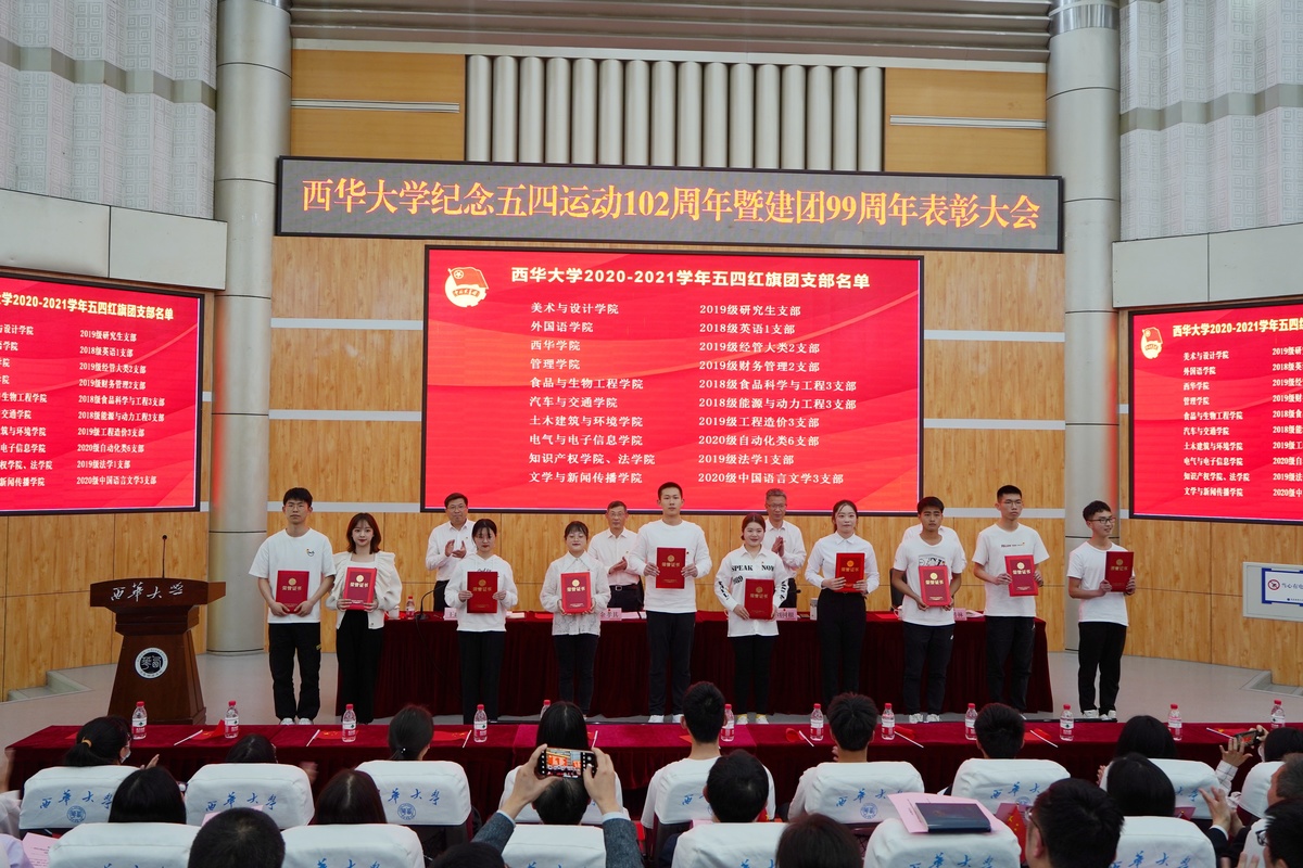 为继承和弘扬五四精神,激励各级团组织和广大青年不断奋进,西华大学举行纪念五四运动102周年暨建团99周年表彰大会。会议对过去一年在共青团工作中涌现出的一批先进集体和优秀个人进行了表彰。校长刘树根宣读了《西华大学关于表彰2020-2021学年五四青年节先进集体和优秀个人的决定》。新团员代表面向鲜艳的团旗,举起右手庄严宣誓,心中充满着激动与自豪。