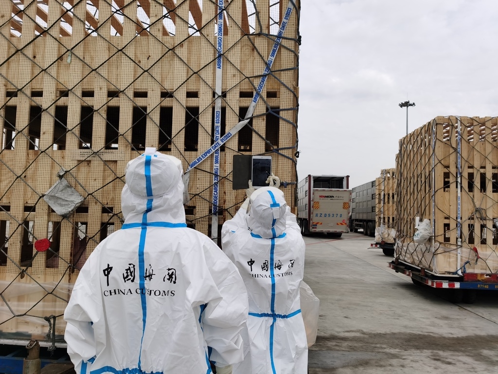 4月28日上午,一架包机降落在成都双流国际机场,机上的“乘客”是来自英国的1030头曾祖代原种猪。飞机停靠指定机位并经消毒处理后,成都海关所属成都双流机场海关关员对该批种猪开展现场查验、临床检查,指导企业在停机坪完成接卸、转运装载。随后,这批种猪由乐山海关关员监管押运至位于眉山的隔离检疫场,开展为期45天的隔离检疫。