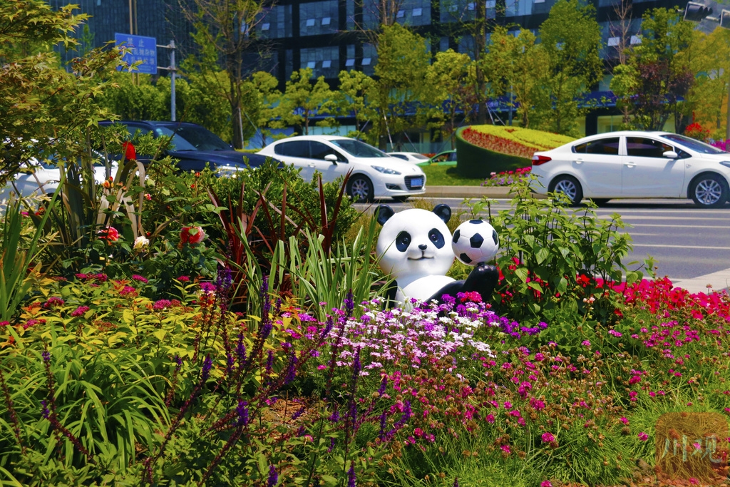 熊猫踢足球、仙鹤立花丛……有没有细心的成都市民发现,近日,在天府大道地块呈现出了和过去五一小长假所不一样的景致?