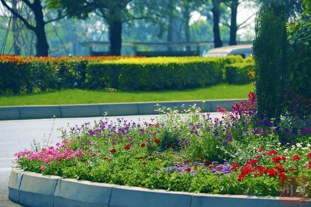 4月29日下午,四川在线记者驱车前往天府大道,在沿线多个点位看到这些景致造型各异,由不同类型的灌木花草和装置道具错落有致装点而成,给大假将临的蓉城街头平添了一抹靓丽。