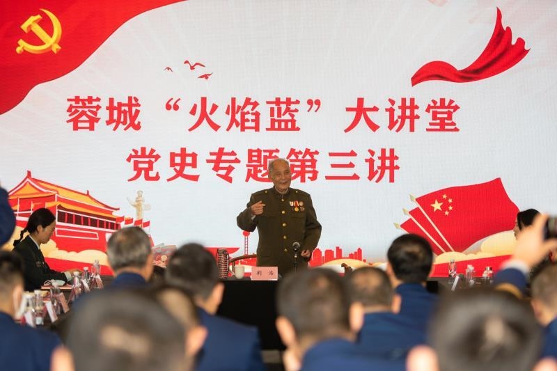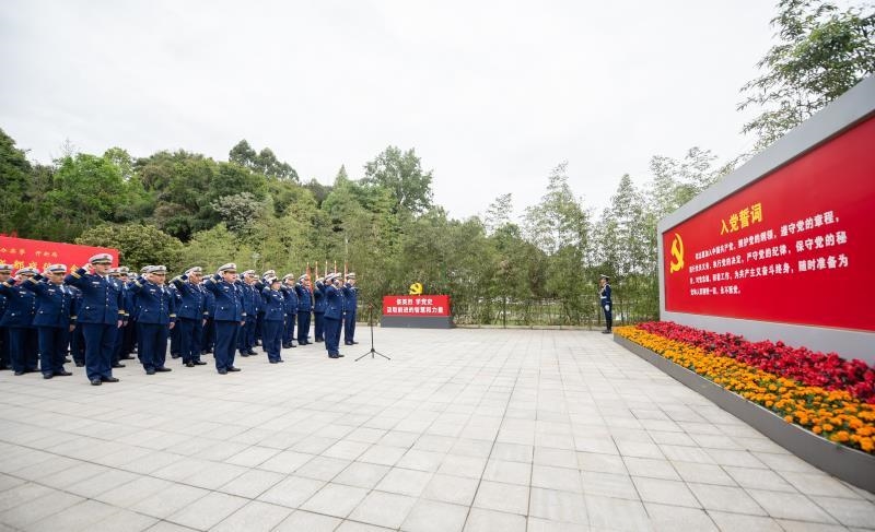 在战役纪念馆广场,面向鲜艳的党旗,全体指战员重温入党誓词,共忆初心使命。指战员铿锵有力的铮铮誓言,响彻在成都战役纪念馆,萦绕在红色革命遗址中。