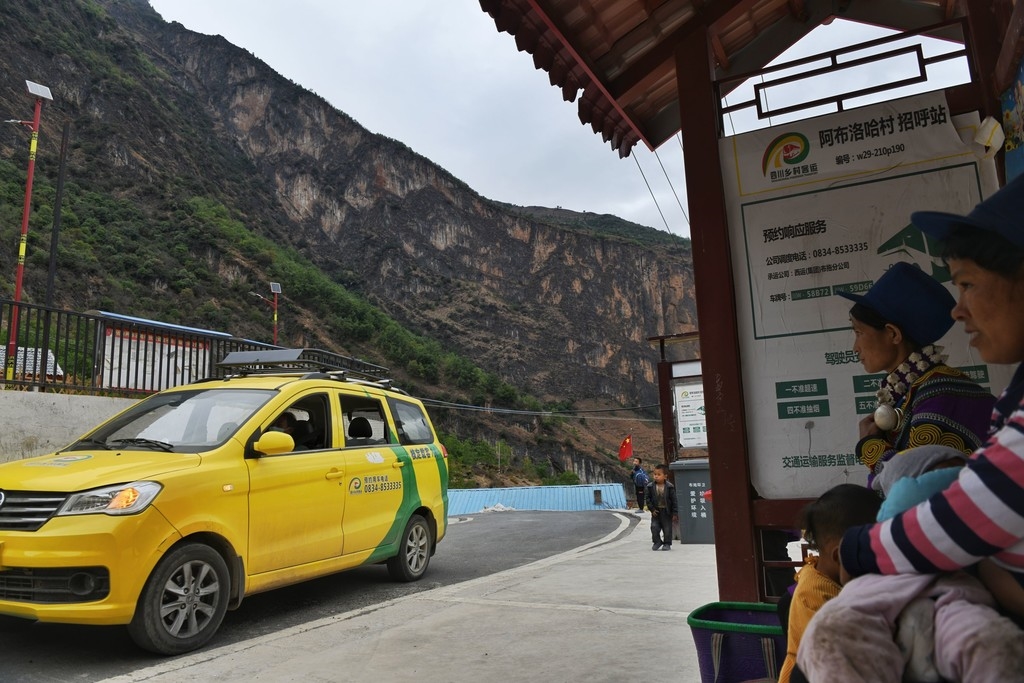 “来了,来了。”4月28日上午约9时30分,一辆黄色的乡村客运车驶向布拖县乌依乡阿布洛哈村,还没到站,在通村公路终点招呼站坐着等车的几位村民远远站了起来。几分钟后,驾驶员陈三按了两声喇叭,"滴——滴——"客车平稳到站。