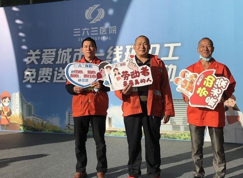 劳动节前 成都三六三医院为百名环卫工人免费体检。成都三六三医院供图。