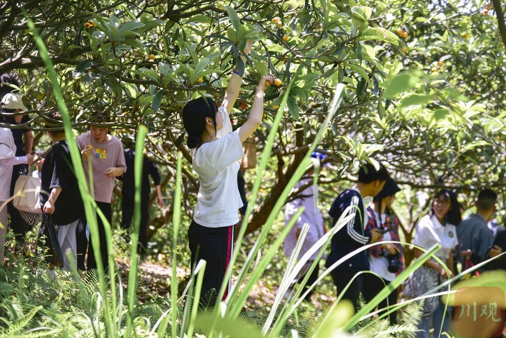 近日,在四川科技职业学院里,“你获得摘枇杷资格了吗?”成为同学之间互相寒暄的新话题。原来,正值学校栽种的枇杷成熟之际,为奖励同学们在过去一年里积极参与城乡环境综合治理、社区文化建设、“青春志愿·靓在乡村”、图书整理、校园白色垃圾清理、拔草等各类志愿劳动,只要义务劳动超过40个小时的同学,均可获得去学校后山摘枇杷的资格。