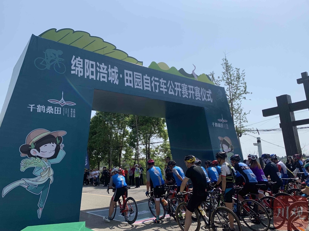 这是涪城区“千鹤桑田”农业主题公园开园暨绵阳涪城·田园自行车公开赛开赛仪式。
