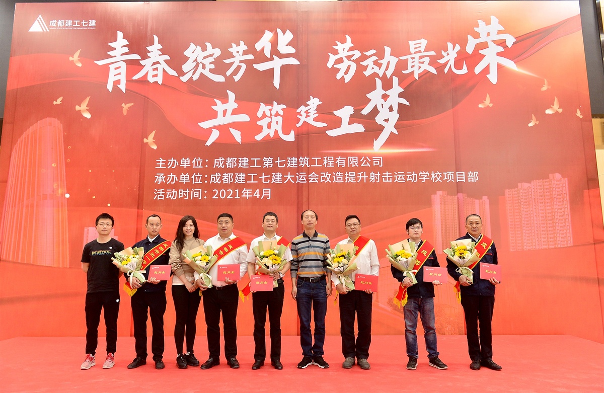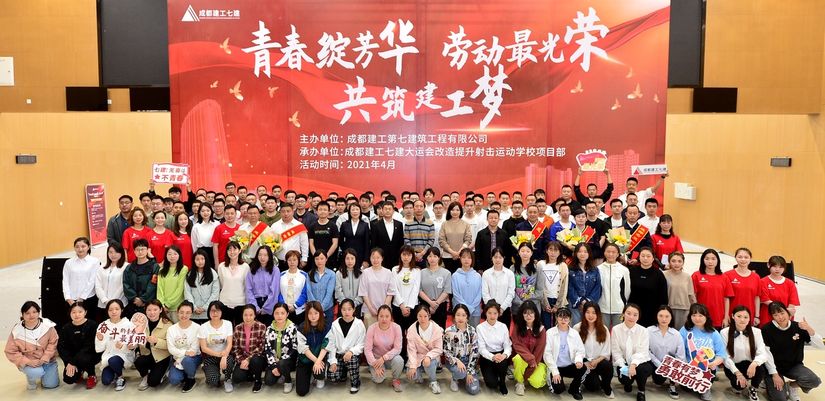 在五一国际劳动节来临之际,为进一步激发职工干事创业激情,充分展示职工锐意进取、奋发有为的精神风貌,成都兴城集团下属成都建工七公司工会日前走进大运会改造提升射击运动学校项目工地,开展“青春绽芳华 劳动最光荣 共筑建工梦”主题活动,公司机关、各项目100余名职工、工友齐聚一堂,唱响工匠精神主旋律,展现职工风采。