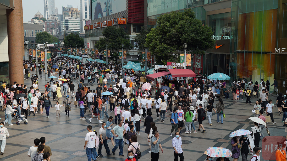 5月1日,“五一”劳动节的第一天,春熙路作为成都重要打卡地吸引了不少外地游客。16:30分左右,成都室外气温依旧有32℃,炎热的天气并未阻挡游客们的步伐,春熙路依旧人满为患。跟随四川在线记者的镜头,来感受一下游客们的“热情”吧。