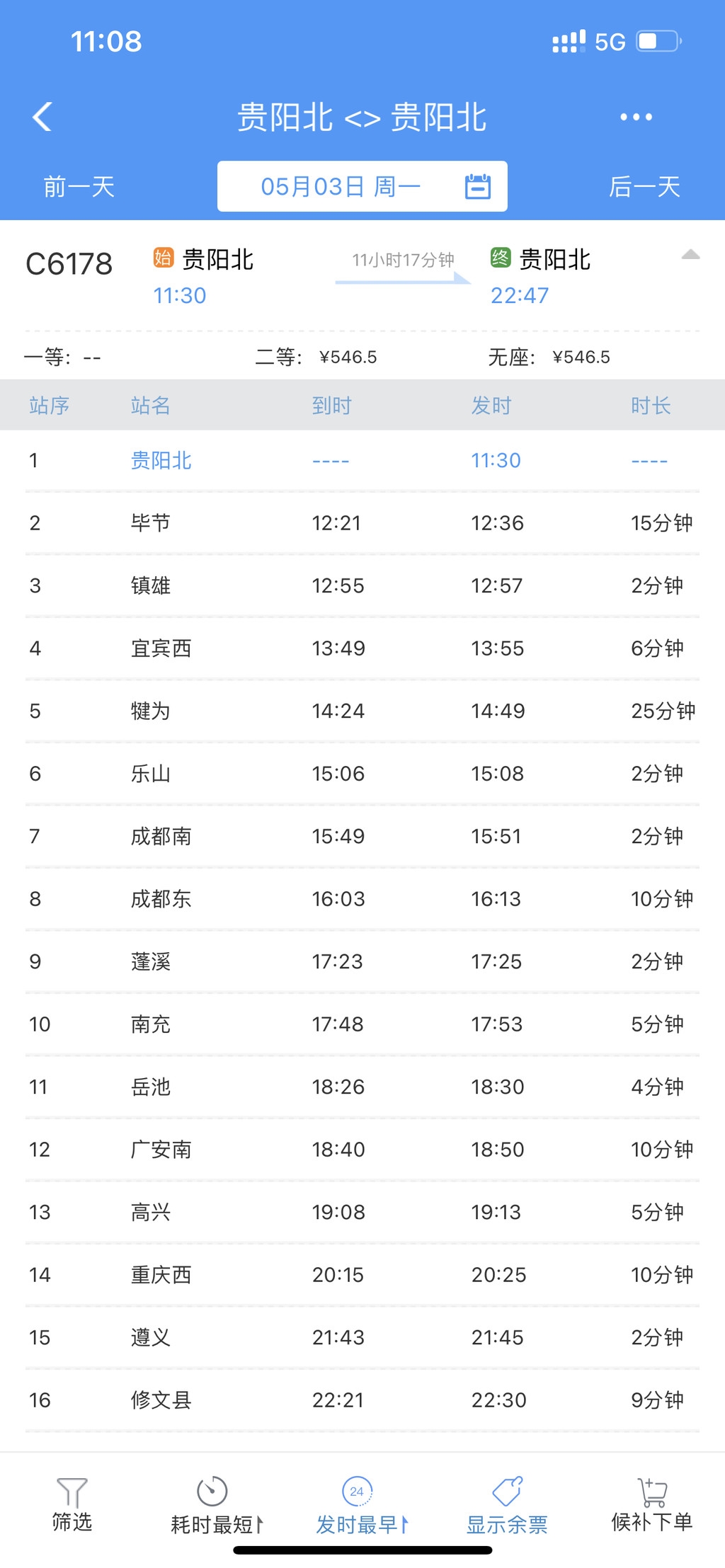 还记得此前开行的川渝贵环线么?分别以成都、重庆、贵阳为起点和终点,串联起了三省(市)的多个地级市。5月1日起,贵阳北至贵阳北的动车新增了两趟车次C6176、C6178,这两趟环线动车的行走路线,将川东北串联起来了!