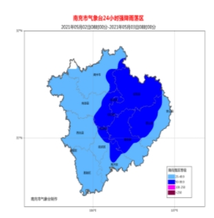 不过,南充市气象台已经发布了暴雨蓝色预警:预计2日8时至3日8时,该市有一次阵雨或雷雨天气过程,雨量普遍大雨到暴雨,过程伴有雷电、短时强降水、阵性大风及冰雹等对流性天气。随后,南充市高坪区、阆中市、南部县、营山县、仪陇县气象台也先后发布了暴雨蓝色预警。