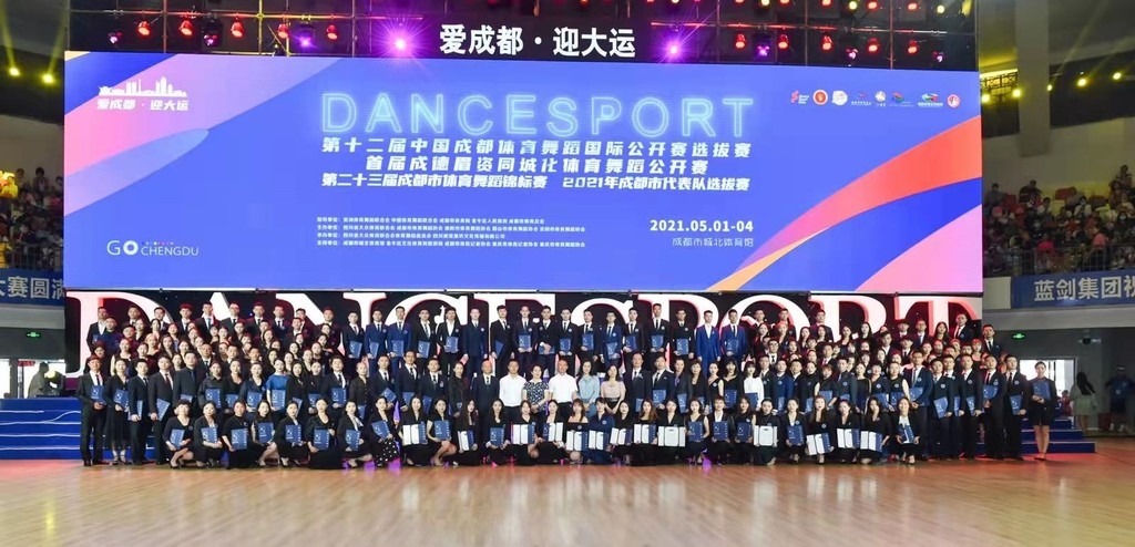 第十二届成都体育舞蹈国际赛公开赛选拔赛、首届成德眉资同城化体育舞蹈公开赛、第二十三届成都市体育舞蹈锦标赛、2021年成都市体育舞蹈代表队选拔赛,四赛合一,吸引来自北京、重庆、陕西、湖北、贵州以及东道主四川的3000多名选手参赛。而在这其中,成都、德阳、眉山、资阳的体育舞蹈爱好者占据了半壁江山。