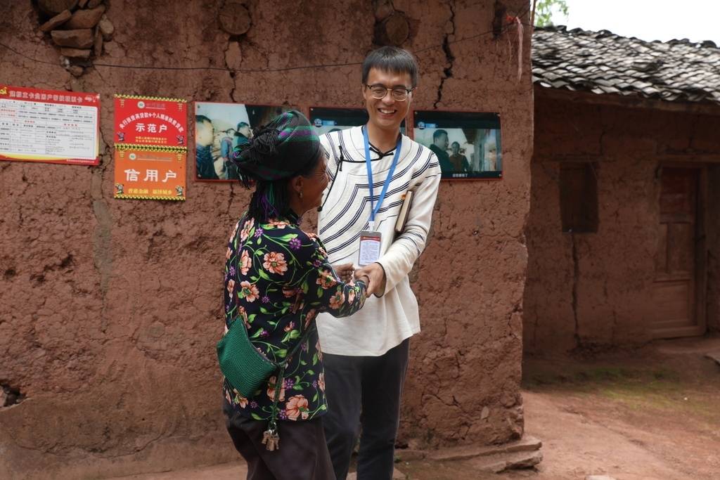 李凯与三河村村民吉木子洛老阿妈交谈。