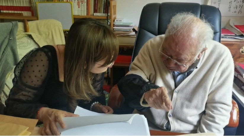 之前只听到过马老的革命故事、看过马老的作品,还没近距离接触过马老。第一次见到马老,他正坐在书桌前认真地看着书,偶尔会把旁边的放大镜拿起来对着书看。面对马老,你会不由自主地忘记他的年龄,他完全不像107岁的老人,尤其谈起70多年前他在西南联大的求学经历时教他甲骨文的唐兰教授等,声如洪钟、中气十足,这个时候你会突然觉得时间好像凝固了一般,你的思绪会跟着马老讲述的甲骨文走。特别有一种想回到当年的西南联大,回到马老当年的课堂上,去听听唐兰等大师们讲古文字学的冲动。