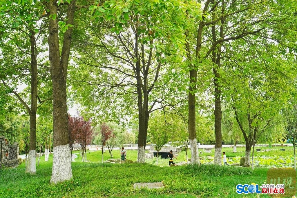 五一小长假最后一天,绵竹市年画村的艺人正潜心描绘《合美幸福》的年画,池塘里翠荷新绿、白莲盛开,绿荫漫步的游人则尽享这夏天的到来。