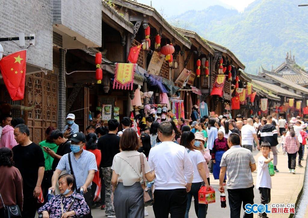 在汶川县水磨古镇,游客们逛古镇、品美食,享受着假日休闲的乐趣。在禅寿老街上,极具藏羌特色的商品琳琅满目,现炒的茶叶、美食、服装、小饰品比比皆是,商铺前挤满了争相购物的游客。在漩口镇无忧谷景区,漫山的杜鹃花相继绽放,红的、粉的、紫的各色杜鹃花与周边的绿树青山、远处的蓝天白云相互衬托,勾勒出一幅如诗如画的美丽画卷,游客们纷纷停下脚步,驻足赏花留影。游客的增多也推动了当地农家乐、民宿的生意火爆。“我们的客房每天都是订满了的,营业额也比平时翻了好几倍。”无忧谷项目负责人崔友成介绍说。