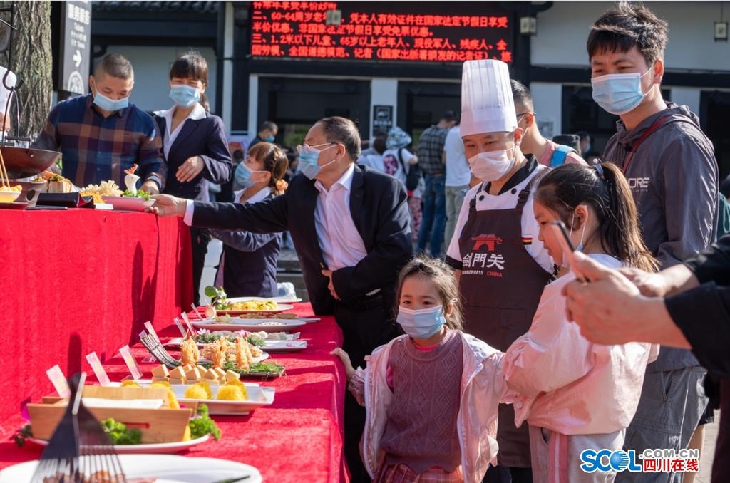 5月1日—5日,剑门寻味·品蜀道千姿——中国·剑门关豆腐美食品鉴会暨乡村振兴公益集市活动在剑门关景区北门广场举行,5天时间,50道豆腐名菜和上百种剑阁特产,让游客大饱口福、满载而归,市场消费活力有序恢复。