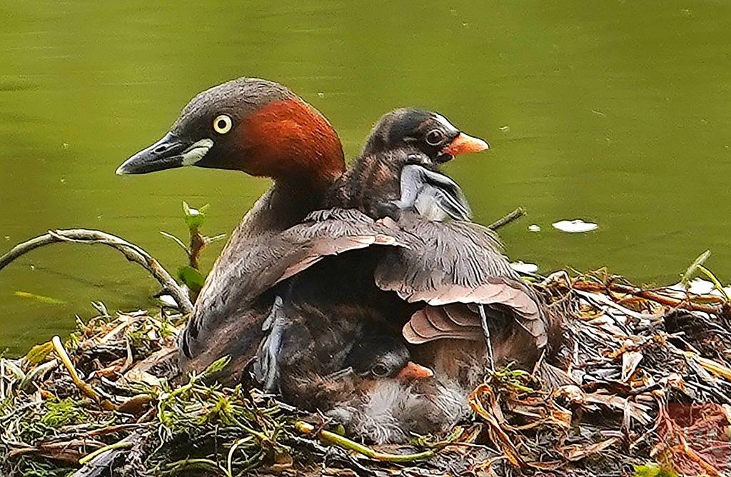 我们常会在城市宽敞的河湖里看见一种比鸭子小且灵动无比的水禽,栖息地远离水岸,它们藏匿在芦苇或水草中,以小鱼、小虾为食,体小的也就拳头大小,它时而一头扎进水里,你都不知道它会从什么地方冒出来,透过望远镜你会发现它生性胆小,即使在孵育也会把巢穴建在飘荡的水面上远离岸边。