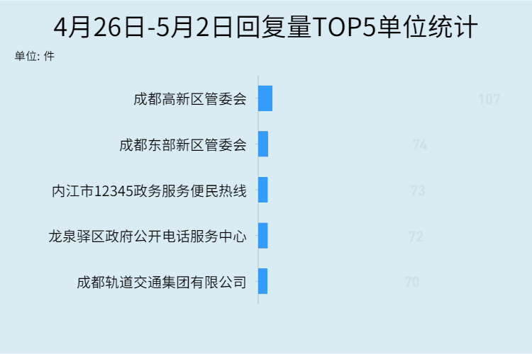从具体接件转办单位来看,全川转办回复量排名上前五的单位分别为: