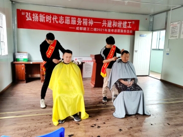 该职工志愿服务队来到天府创新中心项目工地,为施工一线的农民工兄弟们提供义务理发志愿服务。