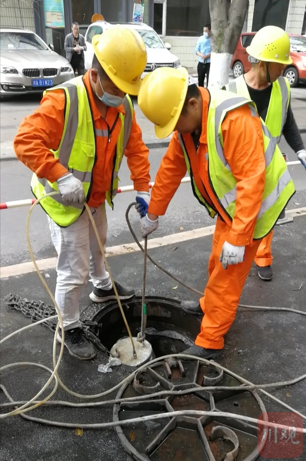 5月6日,在汛期来临之前,成都市武侯区相关部门为防止城区内涝,派出多路排水疏通队,对街道小区的污水下水道进行清理。疏通施工队采用先进机械设备做好保养检查,保障城区能够安全度过汛期。同时,电力部门也积极做好电网的巡查和维护,保障每个家庭的供电。