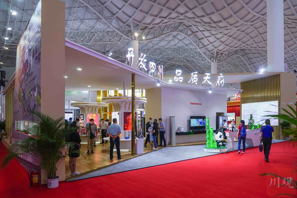 “开放四川,品质天府”,在四川馆展区前,八个大字高度概括了四川在本届消博会上想要表达的主题。