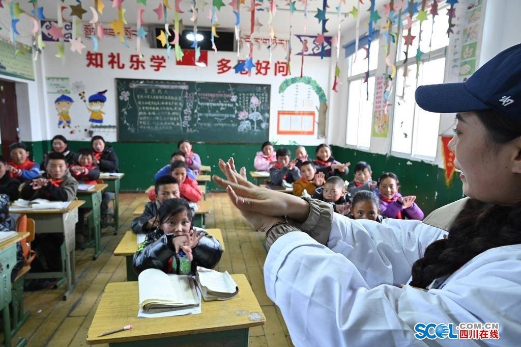 德荣玛乡中心小学校,孩子们在做洗手操。华小峰摄。