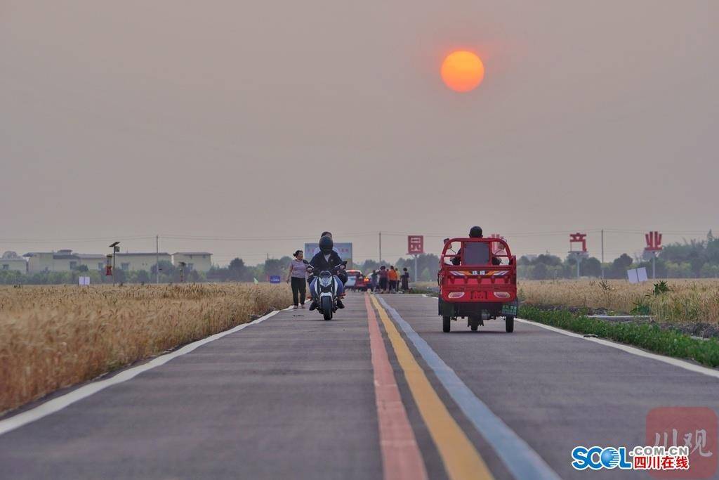 5月8日,夕阳西下,阳光打在广汉市连山镇的麦田上,一片金黄。夜色渐起,越来越多的市民们顺着麦田中的绿道行走,形成一道不一样的风景。当地以农旅融合为思路打造现代农业,深化一二三产业融合、构建农民增收长效机制的超级IP,目前作用已经显现,在成片的农田中的绿道上游走,已经成为当地新景观。