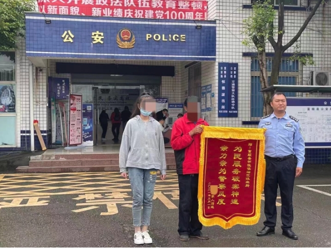 5月6日,老徐父女赶到怀德派出所,送上一面印有“为民服务破案神速 亲力亲为警察风度”的锦旗。