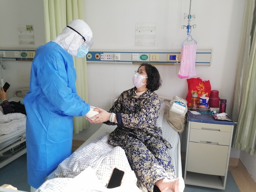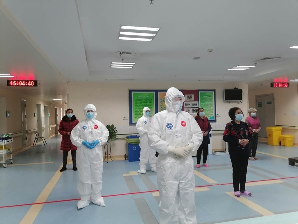 在这里,他带领护理团队积极运用中医特色疗法,在评估安全的前提下带领着轻型和普通性患者在病房外开展五禽戏、呼吸操,利用病房电视,采用视频播放和现场教学相结合,更生动形象。针对重型、危重型和卧床患者,采用“改良坐位五禽戏”。使用五音疗法,改善新冠患者的情绪,激发人们的感情,振奋他们的精神。注重情志护理,积极与患者多方面的沟通,给患者予耐心开导、热心的抚慰和鼓励,帮助患者建立战胜疾病的信心。积极与家属联系,为战胜疫情提供强有力的家庭保障。特殊节点照顾,为患者庆祝生日,准备礼物和小卡片等。自从隔离病房开展中医特色治疗后,在全体医护人员的不懈努力,患者疗效显著。