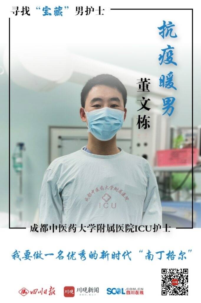 2013年,从护校毕业后,董文栋考入了成都中医大附院正式成为一名护理人员。第二年他被分配到了医院的ICU,这一干就是6年多时间。“与其它科室相比,男护士在ICU更能展现出优势。”董文栋告诉记者,ICU里都是重症患者,时常需要翻身,男护士有力气。ICU里的各种抢救仪器也比较多,通常要搬动也是男护士的事。