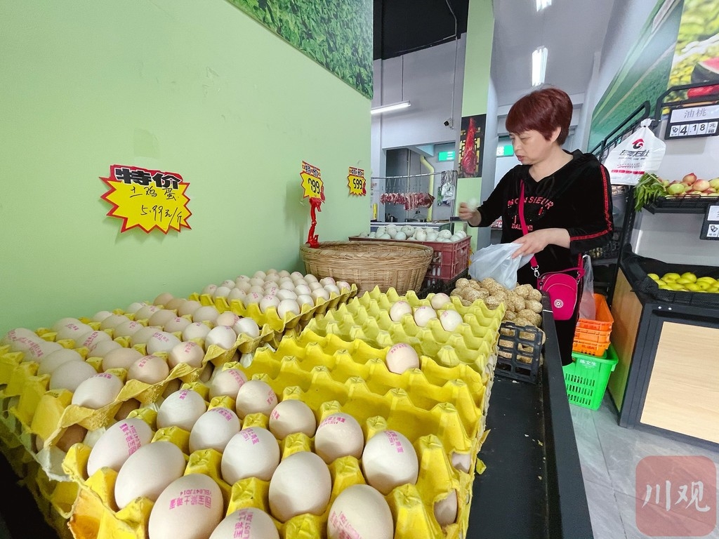 “好吃又不贵,好得很咧,正宗本地土特产、品质有保证,这不,家里的鸡蛋吃完了,我又来买几斤。”5月11日,绵阳市游仙区桑林社区居民张大姐在“左零右社”惠民惠农服务超市内挑选刚刚从20多公里外的游仙区园宝梁村送来的土鸡蛋。