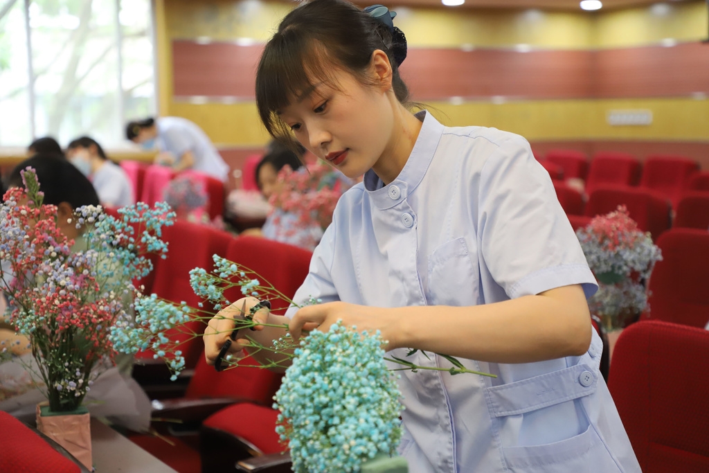 为弘扬南丁格尔无私奉献的精神,在第110个国际护士节到来之际,武警四川省总队医院开展插花活动,让护理人员在工作之余享受插花制作的快乐,感受生活中的艺术美。同时,该医院对年度工作成绩突出的56名护理人员进行了表彰。