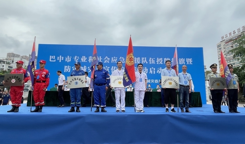 5月12日,时值第13个全国防灾减灾日,为推动巴中市专业和社会应急救援力量建设,普及防灾救灾知识,巴中市举行了专业和社会应急救援队伍授牌授旗暨防灾减灾日宣传拉练活动。