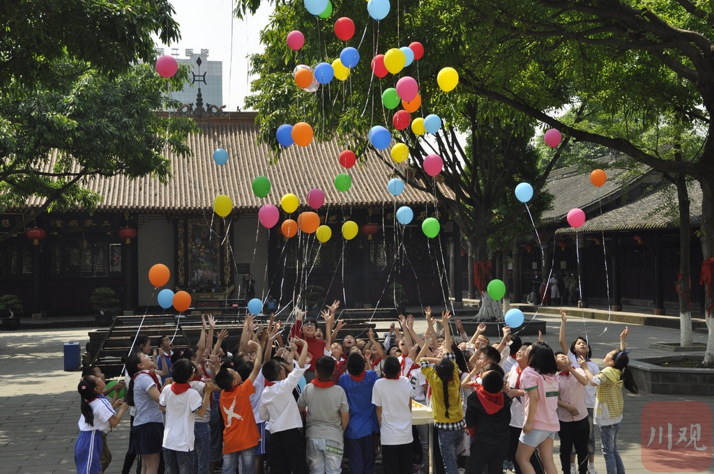 10岁集体生日,“罗汉娃”在罗汉寺放飞气球