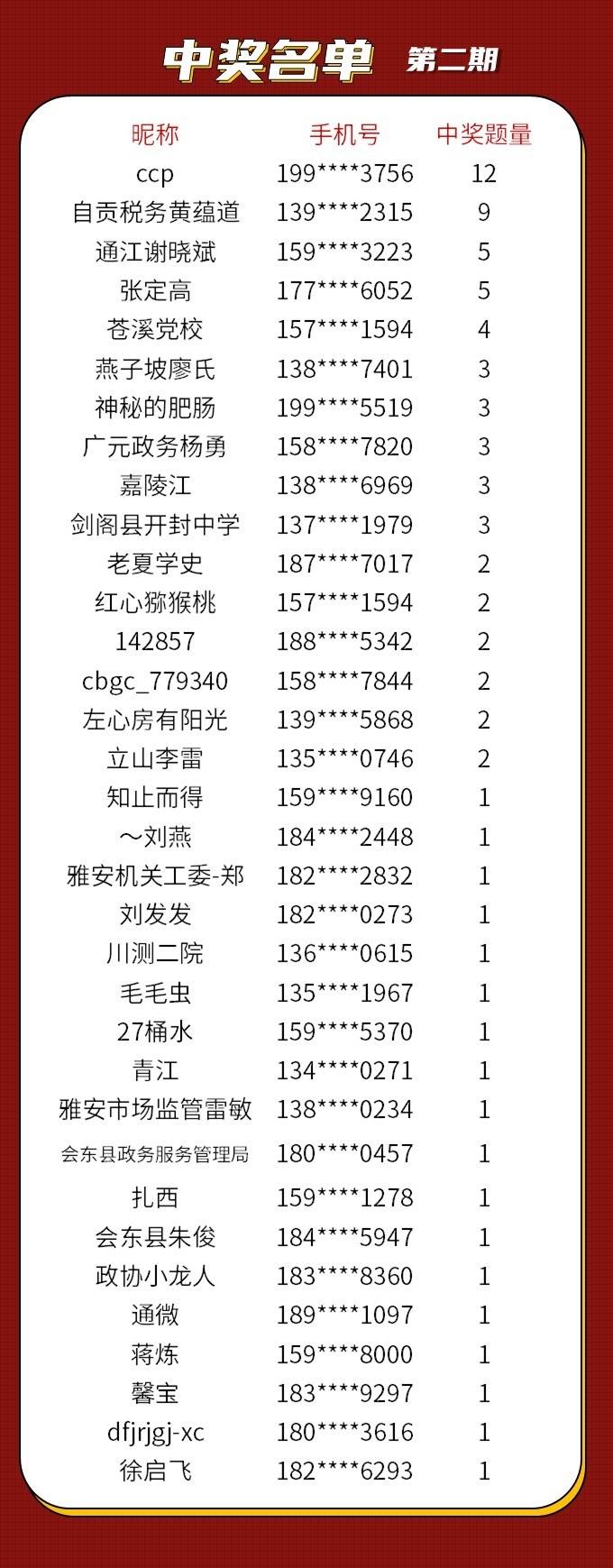 党史征题第二期中奖名单