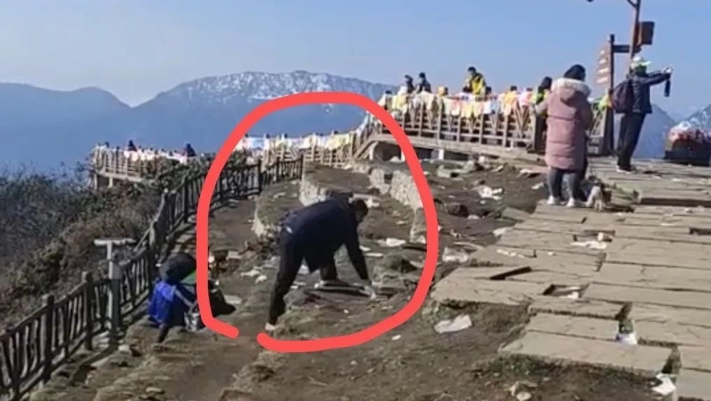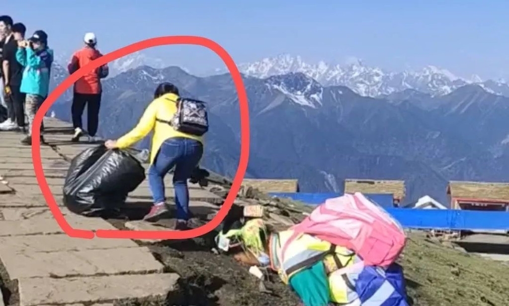据悉,两名游客来自成都,是成都某派出所的工作人员,其中蓝衣男士热心公益的志愿者。当时,与他们同行的还有两位同事,趁着“五一”小长假,一同从成都自驾到达瓦更扎看日出云海,放松一下心情。拾取垃圾时并没想太多,只是见工作人员辛苦,上前帮帮忙,没想到被拍下来了。