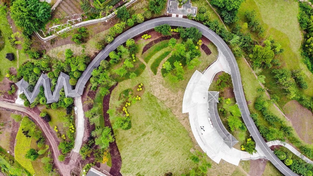 到达山顶,就是休闲观光体验区了,上面有凌云阁、清辉亭两个凉亭。此处是武胜县城地势最高点,极目远眺,县城景色尽收眼底,还可以看到浩浩东流的嘉陵江、观赏到公园的花海梯田。