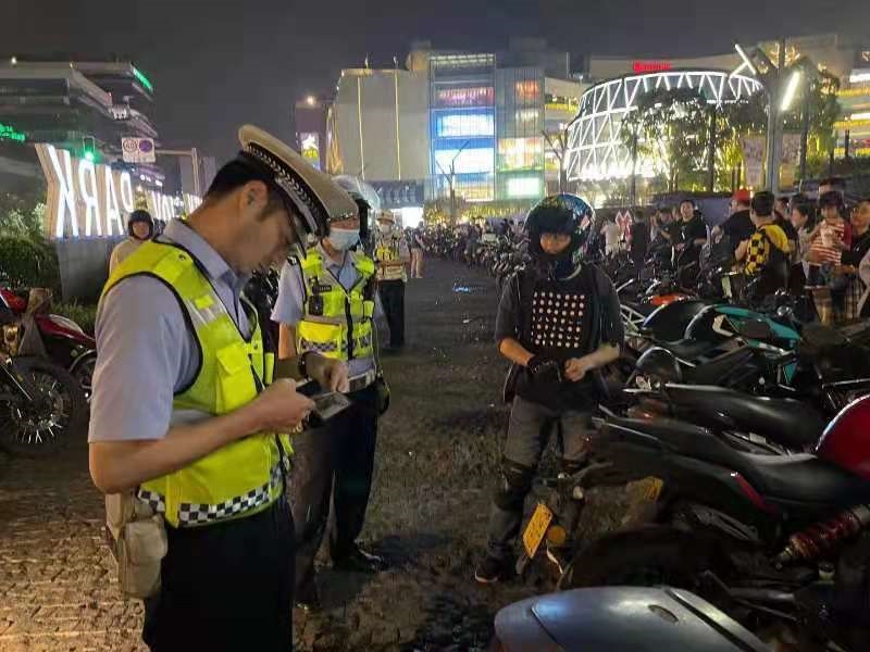 近日,成都交警连续接到不少市民反映,位于武侯区的大悦城周边在夜间有大量摩托车在此聚集,不仅有车辆存在非法改装,同时大功率摩托车发出的巨大声响着实让市民不堪其扰。5月14日晚,成都交警就对成都市南部区域摩托车夜间噪音扰民问题展开了第一波突击整治。