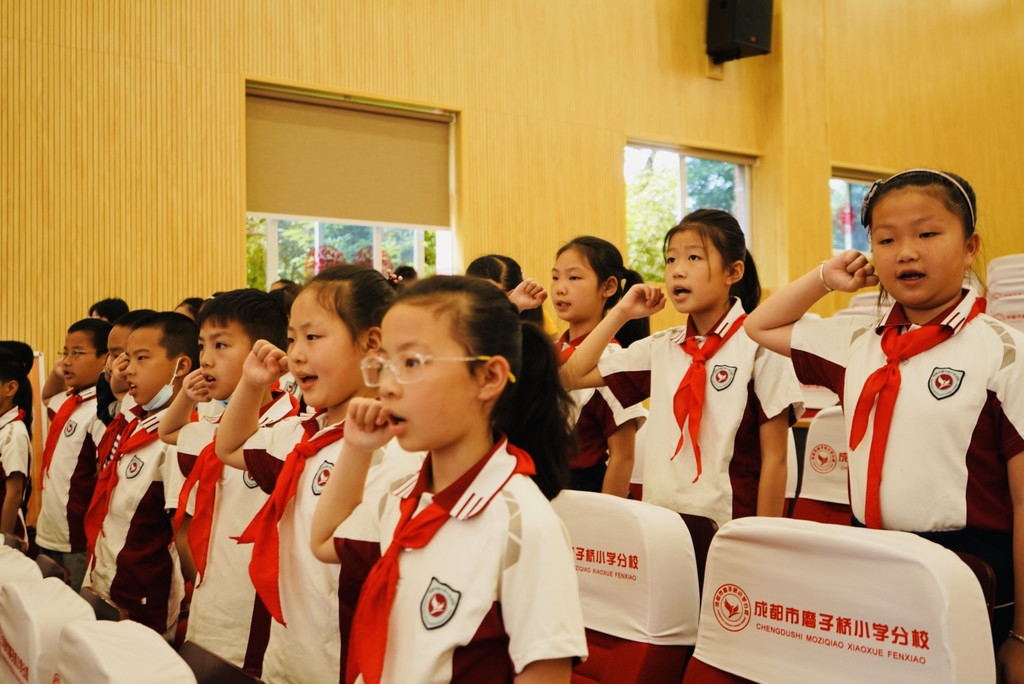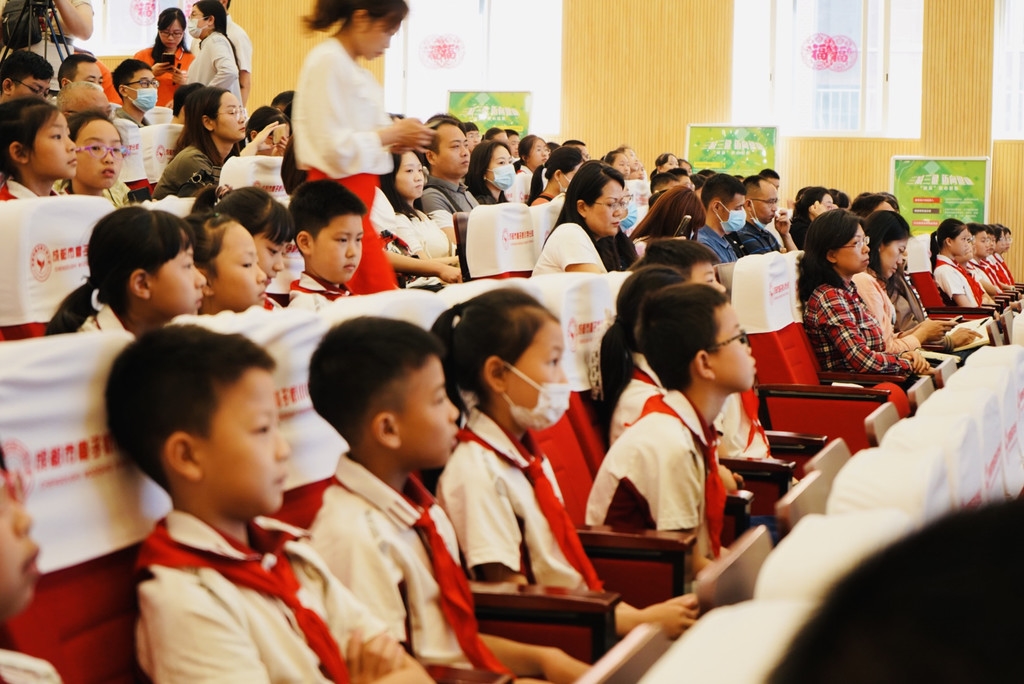 科普讲座前,成都市磨子桥小学分校的孩子们还跳起了运动操、发出了 “珍惜盘中餐,粒粒助健康”倡议——“我们郑重地向全市师生倡议:树立科学饮食理念,重视营养均衡性、全面性、不挑食,不偏食,膳食均衡,增强体质......”