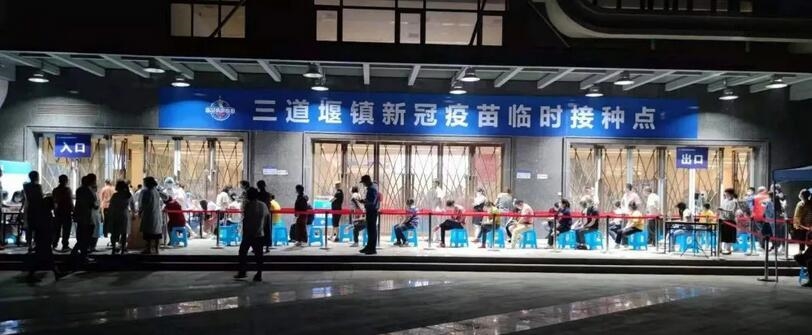 初夏的夜晚,时钟慢慢指向5月16日21点,郫都区三道堰镇的新冠疫苗临时接种点依然人来人往、灯火通明。
