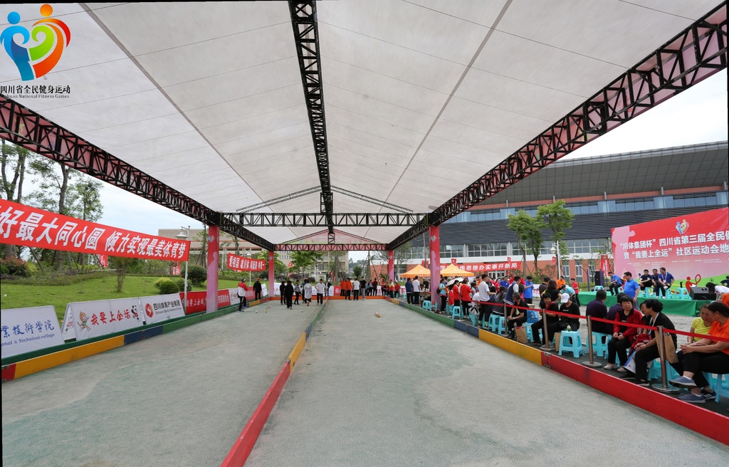 为期四天的“川体集团杯”四川省第三届全民健身运动会暨"我要上全运"社区运动会地掷球比赛于5月16日在乐山职业技术学院正式开幕。来自全省16支代表队近300名运动员、教练员、裁判员、领队参加开赛仪式。