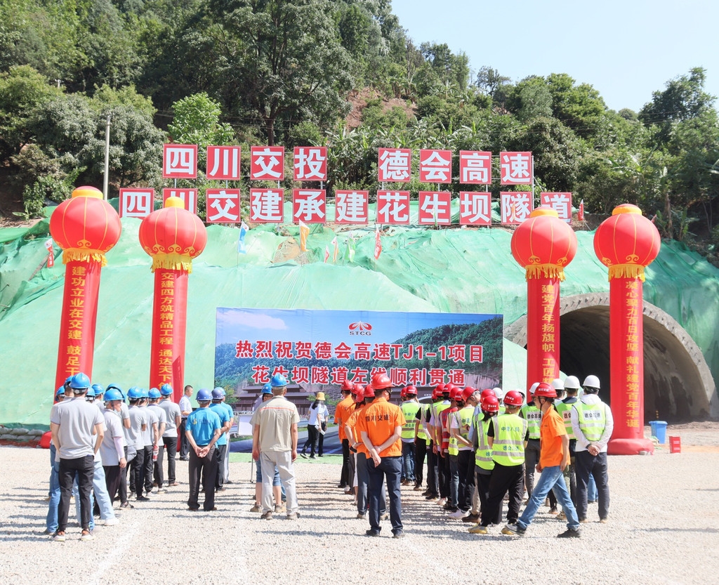 5月18日10:30,伴随着机械的轰鸣,四川交投川高攀西公司德昌至会理高速公路花生坝隧道左线贯通,这也是德会高速全线首条率先贯通的隧道。