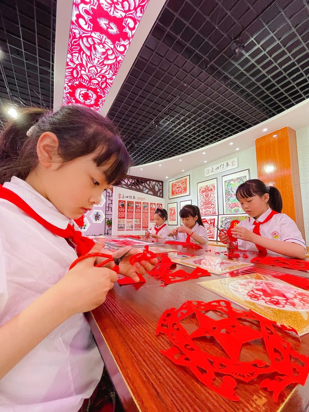 “作为三台县青少年爱国主义教育基地和三台县党史学习教育现场教学点,我们用100幅剪纸作品,再现了中国共产党走过的100年光辉历程。”学校相关负责人告诉记者,结合孩子们喜欢听故事、做游戏等特点,把党史知识贯穿于学习剪纸过程中,鼓励孩子们以团徽、党徽、革命历史事件等题材创作剪纸作品,进一步激发他们了解党史、学习党史知识热情,让他们从波澜壮阔的百年党史中获得源远流长的精神动力。