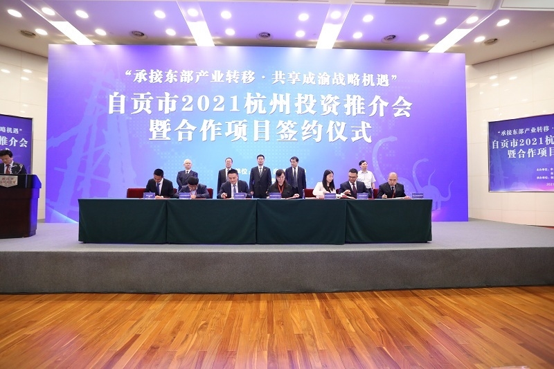致敬浙川义重,鸣谢之江情深。5月19日,在四川省党政代表团赴浙江省答谢学习之际,自贡市在浙江杭州美丽的西子湖畔,隆重举行以“承接东部产业转移·共享成渝战略机遇”为主题的自贡市2021杭州投资推介会暨合作项目签约仪式。